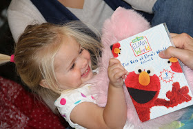 For decorations, we used red balloons to scatter on the floor, helium Elmo balloons for a centerpiece, plush Elmos that we already own, and red and orange plates and napkins.