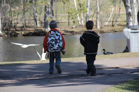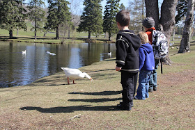 I cleaned out the fridge yesterday and found a few forgotten buns and the last pieces of a loaf near the back. So, we went to a pond nearby to feed the birds.
